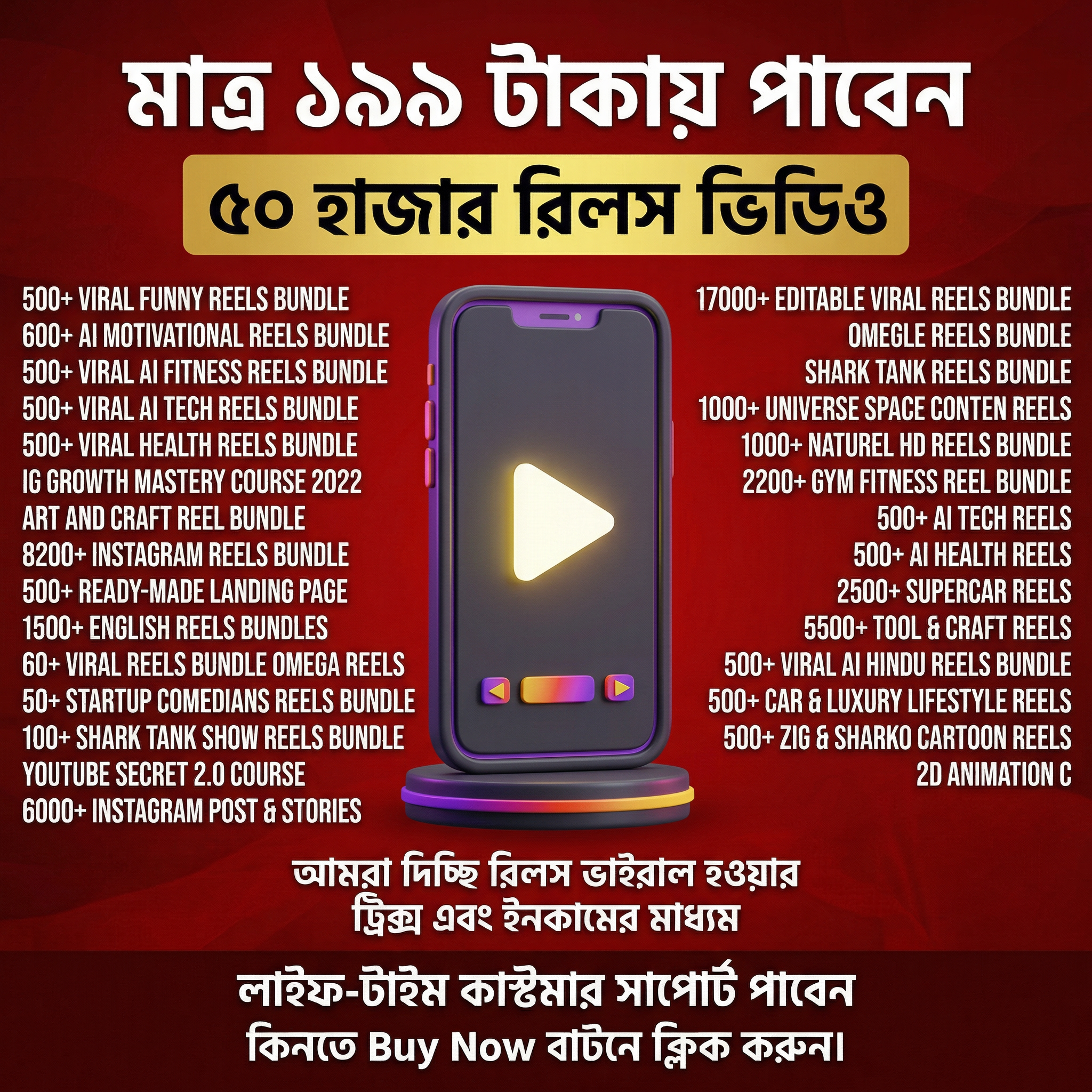 50000+ রেডিমেইড AI Reels ভিডিও অফার প্রাইজে মাত্র ১৯৯ টাকা